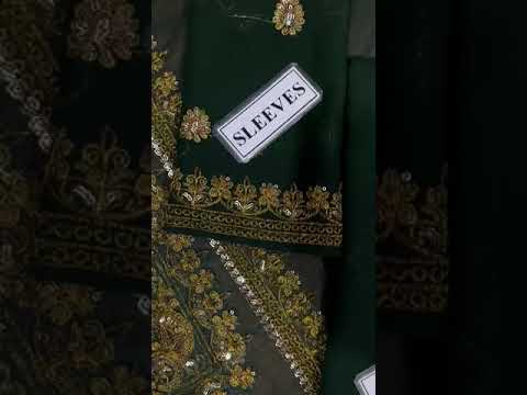 *chiffon fully heavy embroidered spangle work front with heavy embroidered spangle work neck line &eavy embroidered spangle work daman lace*