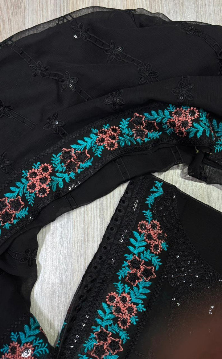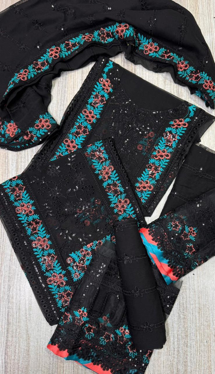 •Organza Sequence Embroidered Daman Border (Front & Back)