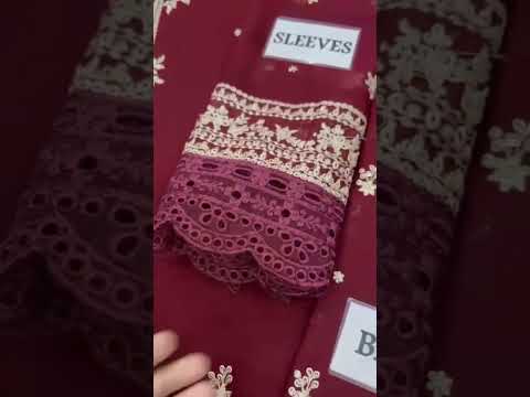chiffon heavy embroidered spangle work sleeves with fully heavy embroidered cutwork border joint