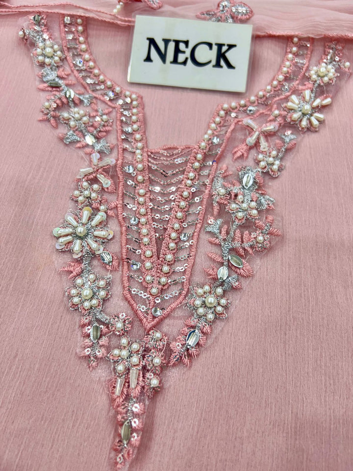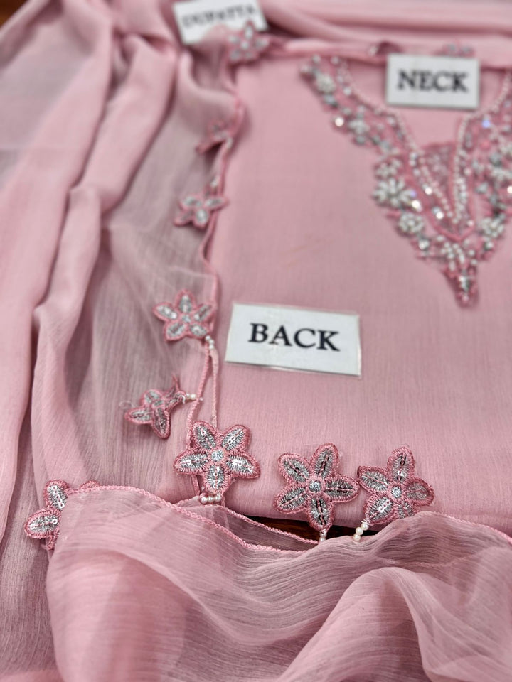 Chiffon Dyed Front, Along with Elegant Embroidered Neck Patches and Heavy Adda Work