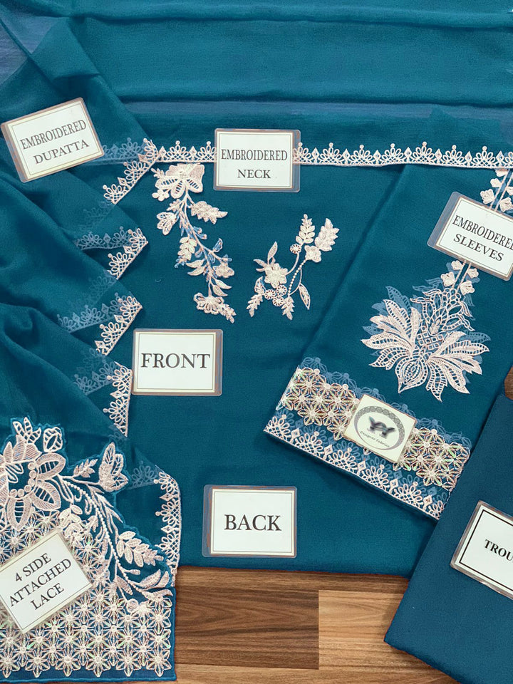 Cationic Chiffon Dyed Front, Along with Elegant Embroidered Neck Patches