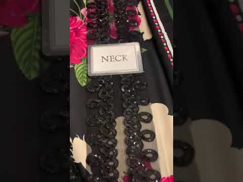 printed lawn front with heavy embroidered spangle work neckline with embroidered spangle work