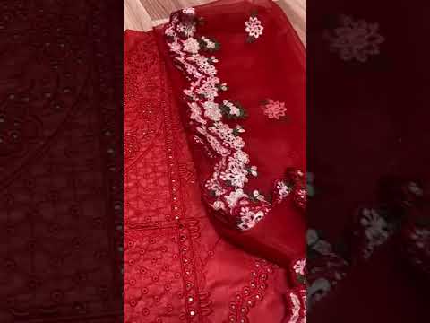 FULLY HEAVY EMBROIDERED DUPATTA WITH 4IDES EMBROIDERED CUTWORK BORDER ATTACHED READY TO WEAR