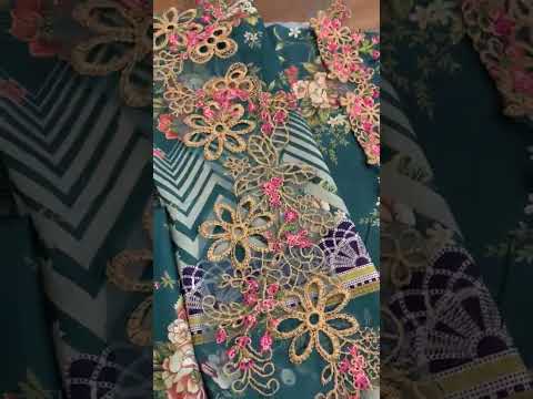 *Digitally printed lawn sleeves with heavy embroidered spangle work sleeves border with heavy embroidered spangle work sleeves bunches*