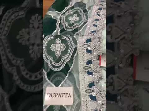*Organza fully heavy embroidered spangle work Laser cutwork dupatta & 4 sides fully heavy embroidered spangle work border attached with full cutwork*