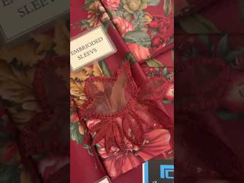 *Digitally printed lawn sleeves with embroidered spangle work sleeves bunches*