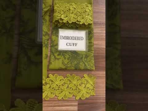 *Printed lawn sleeves with heavy embroidered spangle work, sleeves with a heavy border*