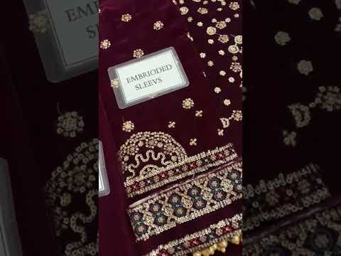 *Velvet fully embroidered spangle work sleeves with velvet embroidered spangle work sleeves border and fancy tassels attached*
