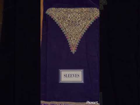 Chiffon embroidered dupatta with Embroidered Velvet Pallu.
