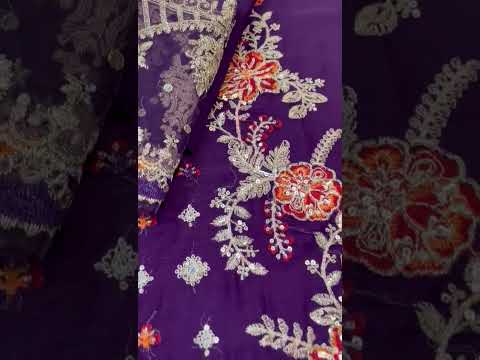-Chiffon heavy embroidered spangle work centre panel with heavy embroidered spangle work neckline and heavy hand embellishment adha work with heavy embroidered spangle work side panel attached, also heavy embroidered spangle work daman border