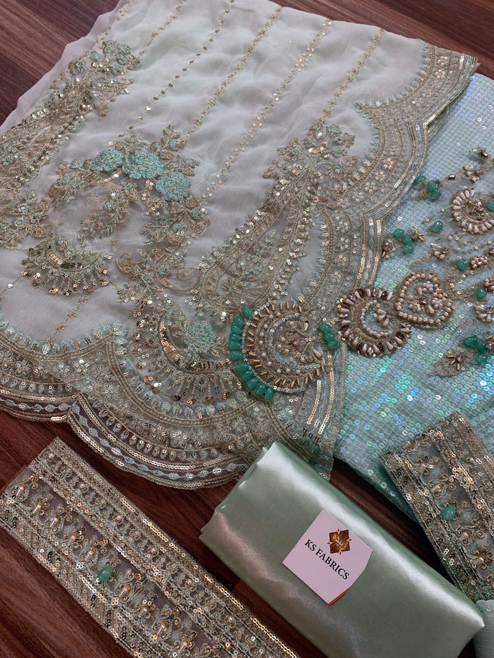 Heavy Embroidered with 5MM Sequence Bamber Chiffon Back and Embroidery Daman Patch