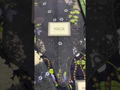 *Printed lawn with fully heavy embroidered schiffli work front with heavy embroidered spangle work neckline with heavy embroidered spangle work daman border*