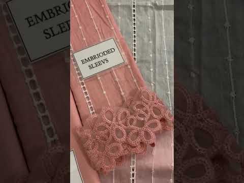 Printed lawn sleeves with heavy Schiffli embroidered spangle work sleeves with embroidered spangle work border