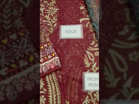 *Printed lawn front with heavy embroidered Schiffli neckline with heavy embroidered spangle work, daman border*
