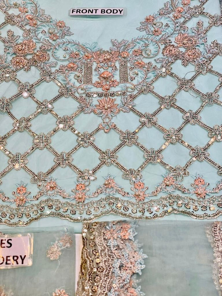 *Net fully heavy embroidered spangle work front body with 3D flowers attached*