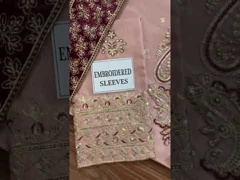 •Sequenced Embroidered Organza Dupatta with Heavy Embroidered Pallu & Silk fabric 4-Side Attached Sequenced Embroidered Broder Ready to wear